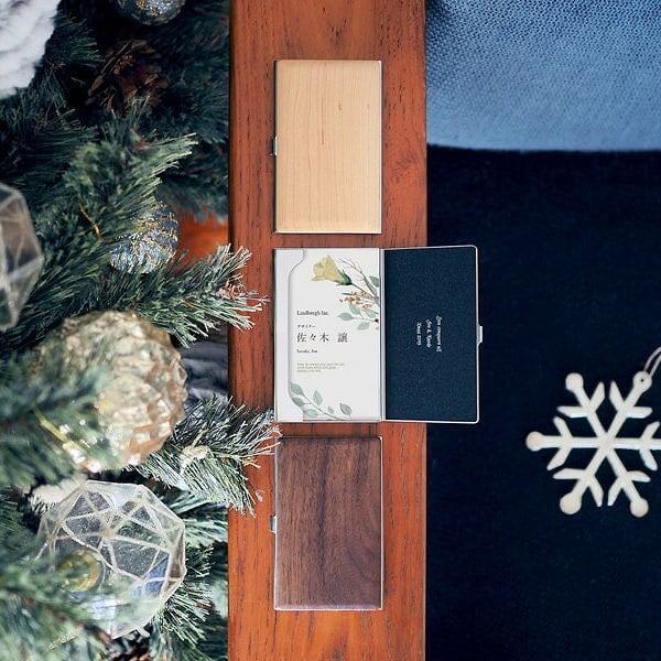 天然木の肌触りがあたたかみを感じる名刺入れです。