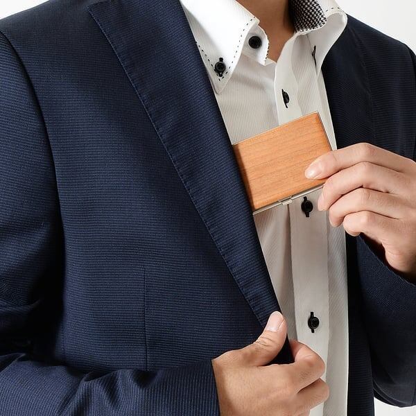 自然素材とステンレスのコントラストが上品で、名刺交換での印象をアップしてくれます。