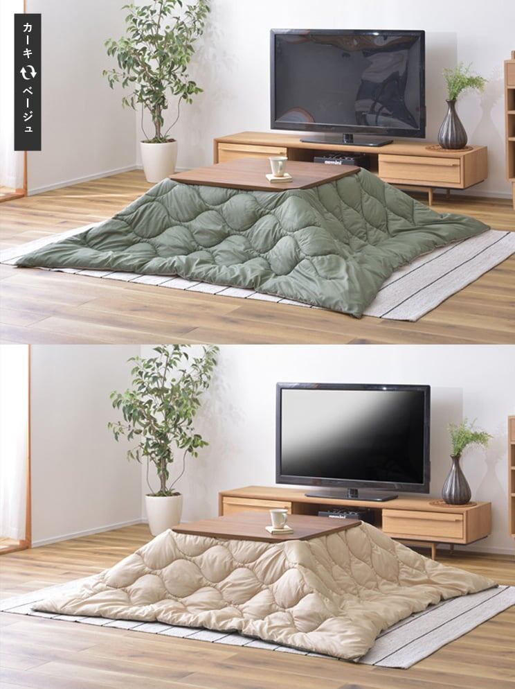 リバーシブルでお使いいただける、撥水加工を施したこたつ布団。